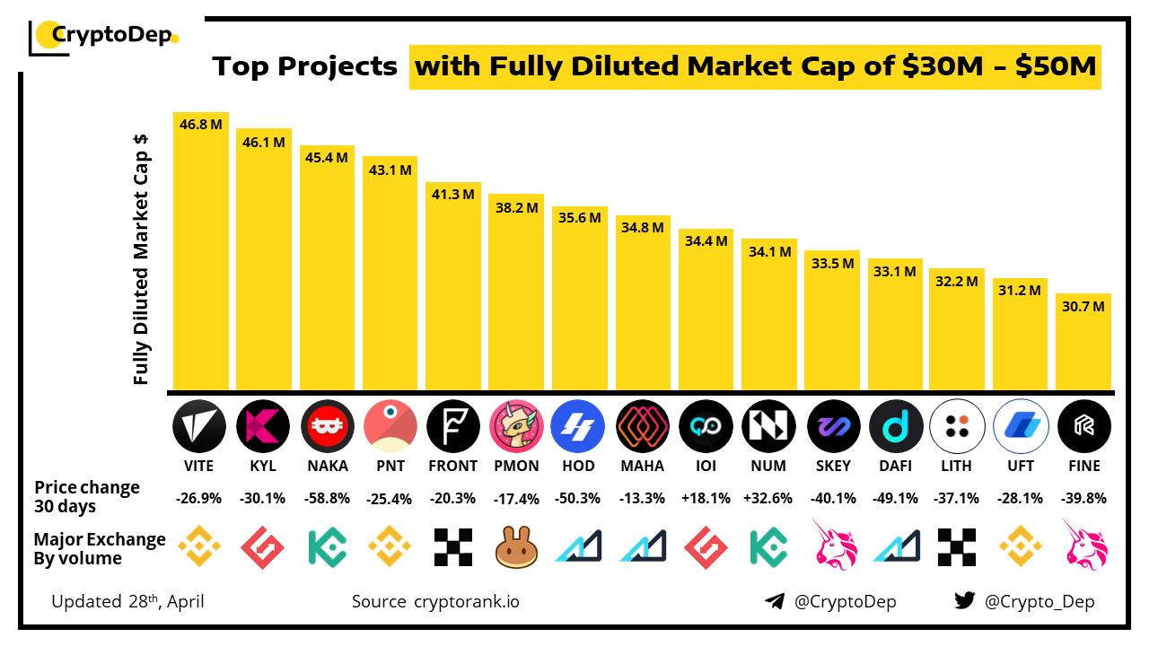 ββTop Projects with Fully Diluted Market Cap of $30M - $50M