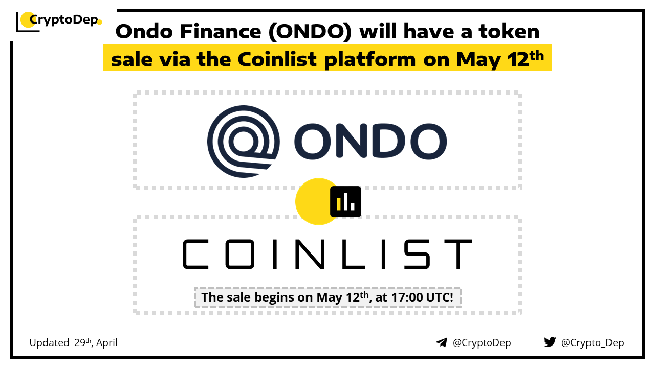 ββOndo Finance (ONDO) will have a token sale via the Coinlist platform on May 12th