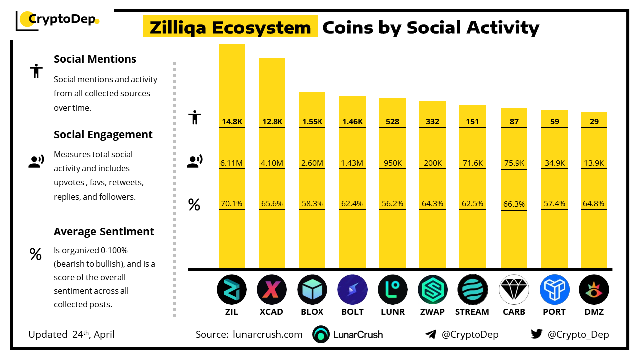 ββZilliqa Ecosystem Coins by Social Activity