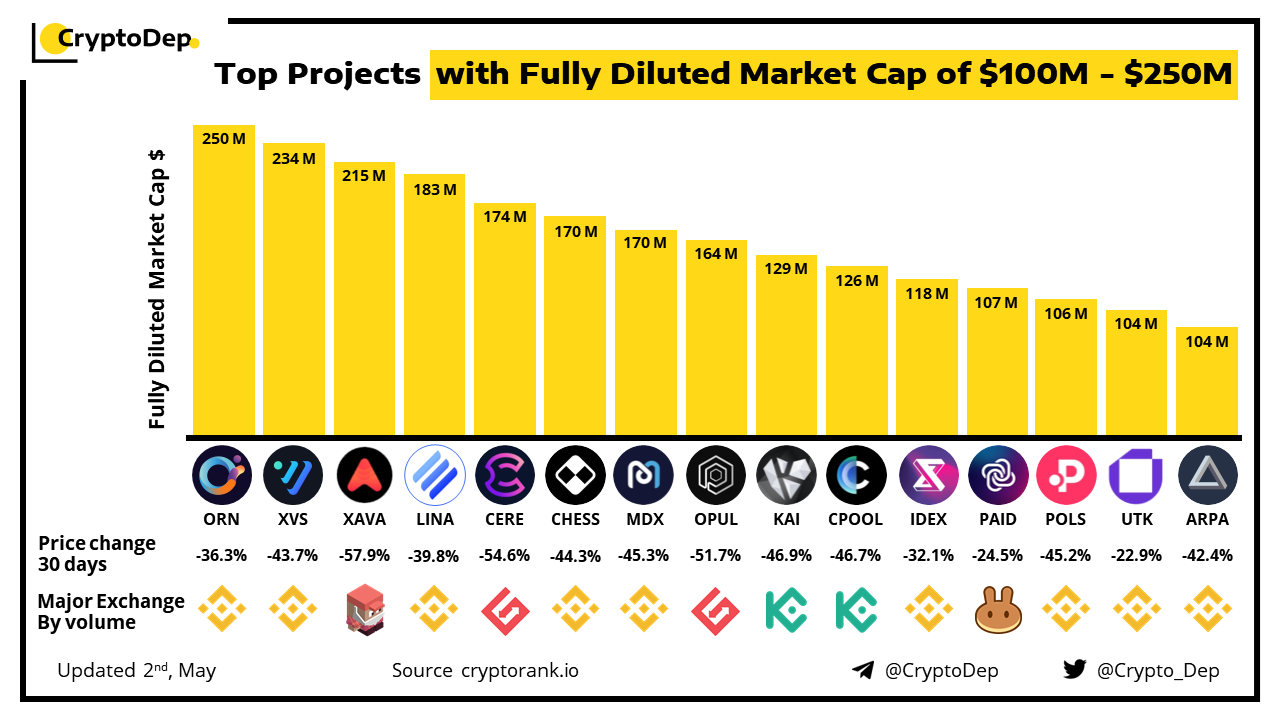 ββTop Projects with Fully Diluted Market Cap of $100M - $250M