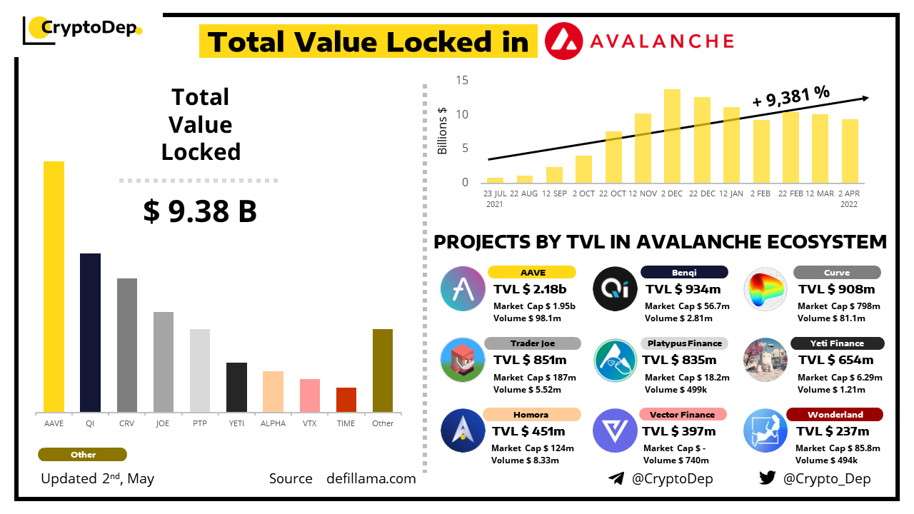 ββTotal Value Locked (TVL) in Avalanche Ecosystem