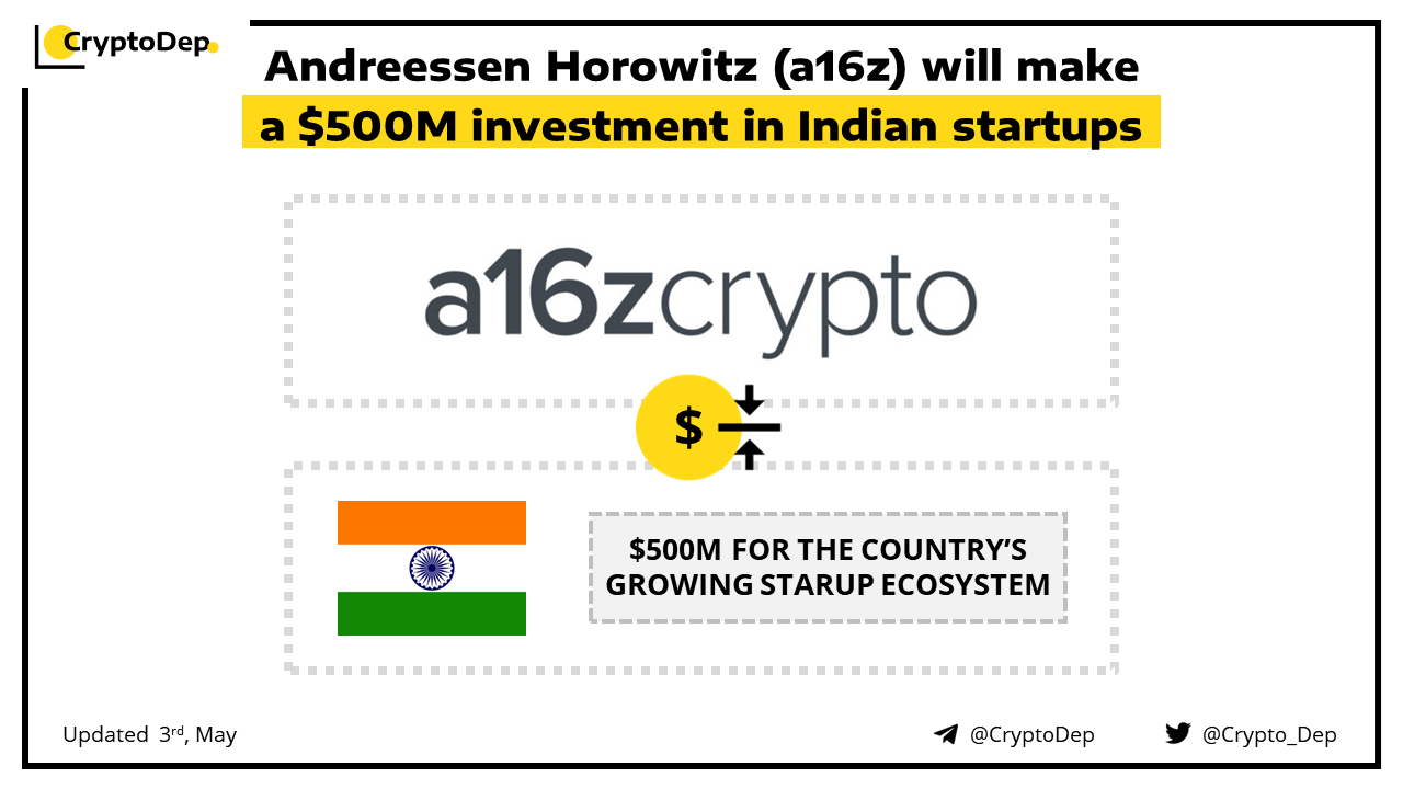 ββAndreessen Horowitz (a16z) will make a $500M investment in Indian startups