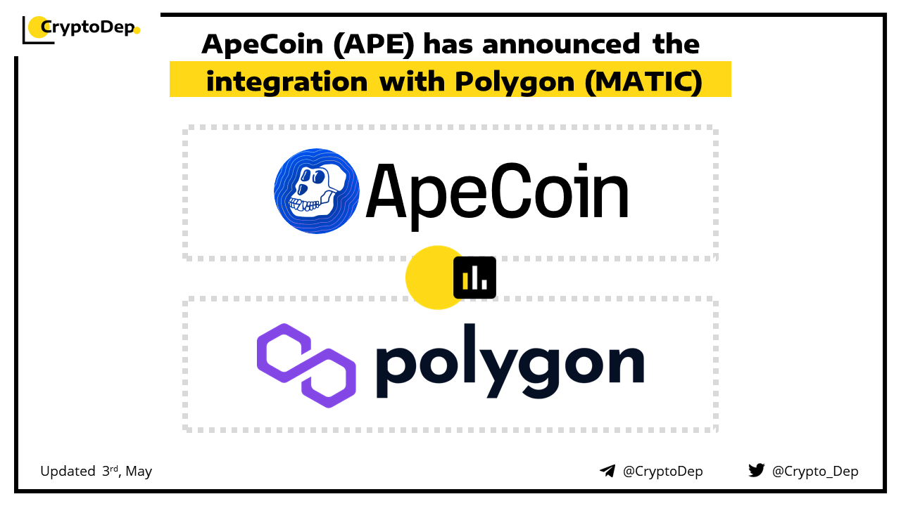 ββApeCoin (APE) has announced the integration with Polygon (MATIC)