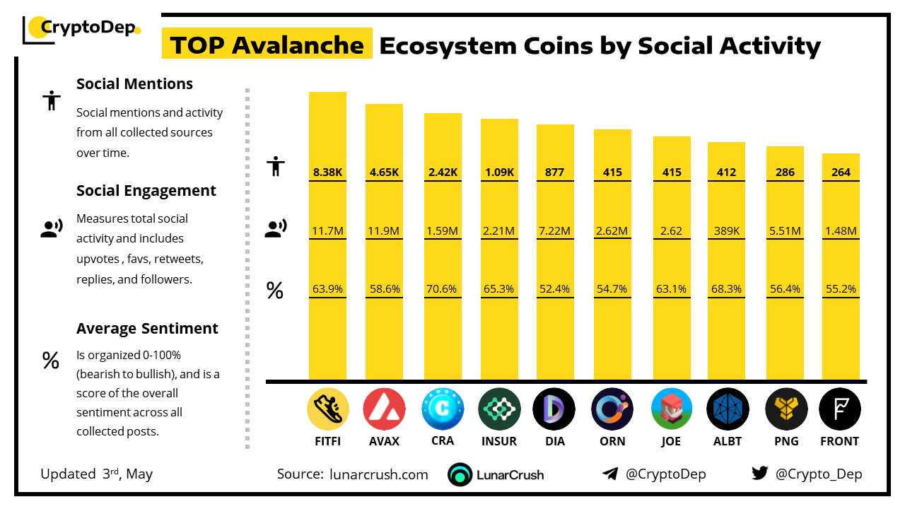 TOP Avalanche Ecosystem Coins by Social Activity