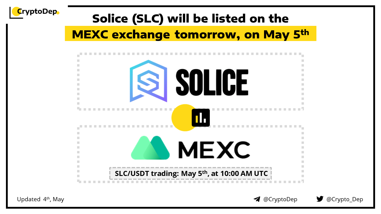 ββSolice (SLC) will be listed on the MEXC exchange tomorrow, on May 5th