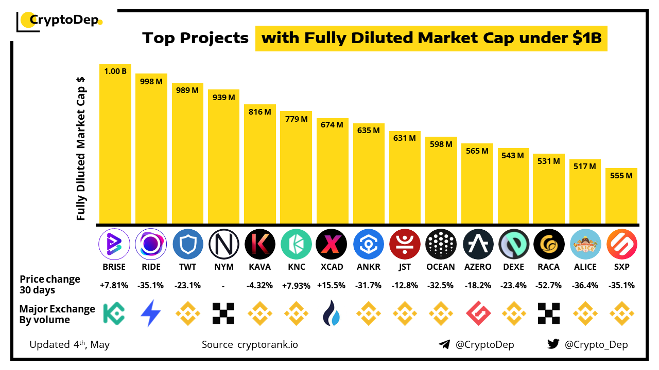ββTop Projects with Fully Diluted Market Cap under $1B