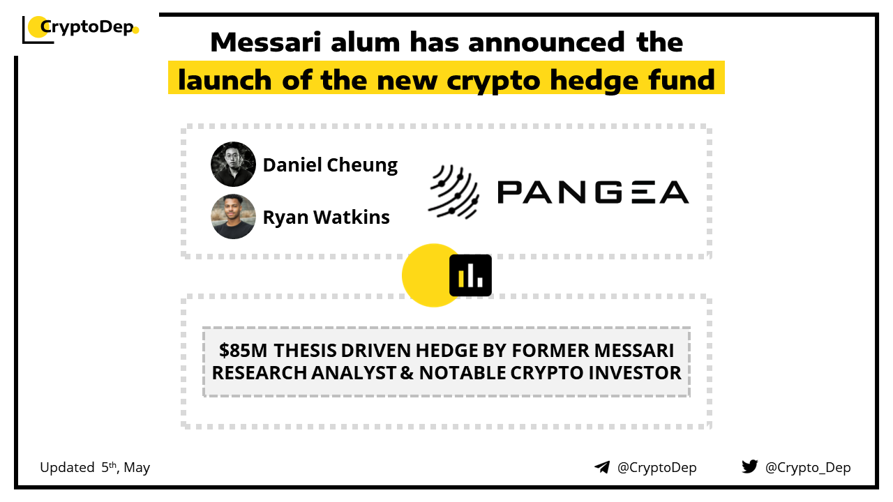 Ryan Watkins, a former analyst at crypto research firm Messari, and Daniel Cheung, a popular investor, and Twitter personality, have teamed up to launch the $85M Pangea Fund Management. Pangea Fund Management is a thesis-driven hedge fund making high conviction, concentrated investments in the secular winners of the crypto-economy.
