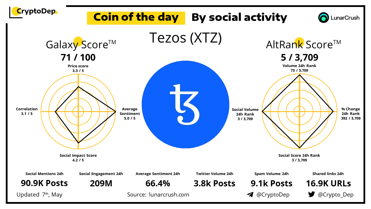 ββCoin of the day by social activity - Tezos (XTZ).