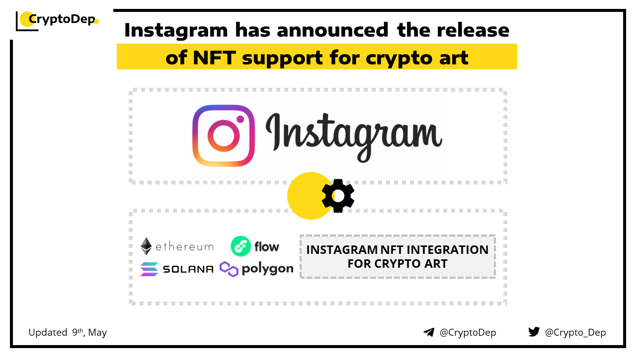 Instagram, the social media platform owned by Meta, will support NFTs for crypto art from Ethereum, Polygon, Solana, and Flow, which host most of the trading in digital collectibles. Instagram will not charge users for posting and sharing NFTs, as Twitter initially did for its hexagonal NFT profile pictures in January.
