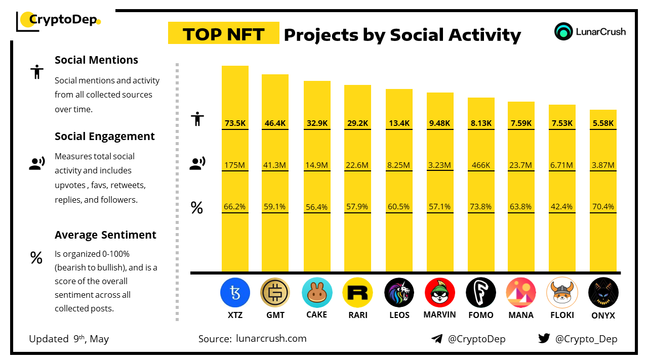 Social Engagement measures total social activity and includes upvotes, favs,retweets, replies, and followers.