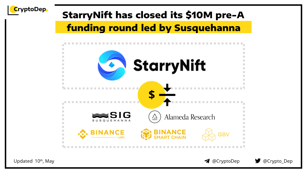 StarryNift, a Metaverse co-creation platform has closed its $10M funding round led by Susquehanna. Binance Labs, BSC Fund, Alameda Research and GBV Capital have also participated in the round. StarryNift allows players and commercial users to create, auction, trade and play with unique NFTs.