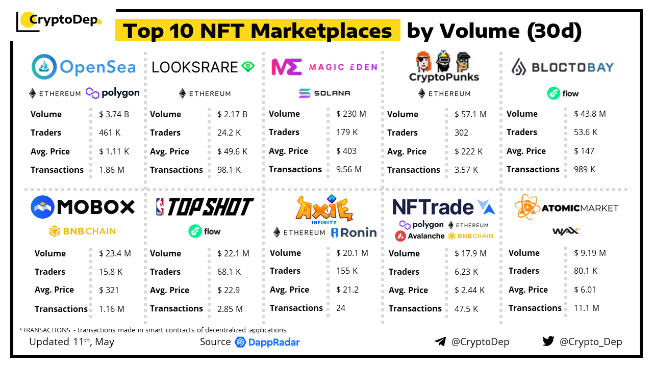 ββTop 10 NFT Marketplaces by Volume (30d)