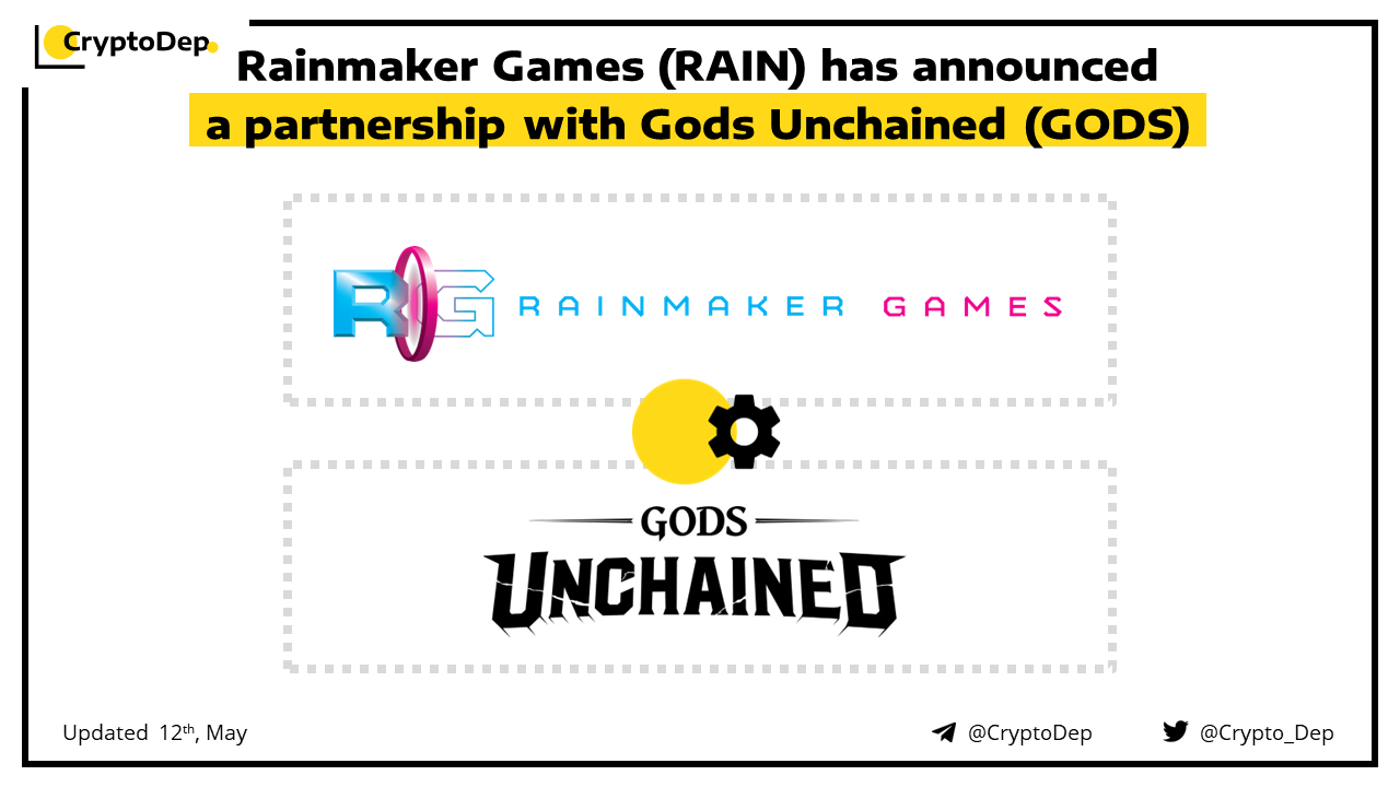 ββRainmaker Games (RAIN) has announced a partnership with Gods Unchained (GODS)