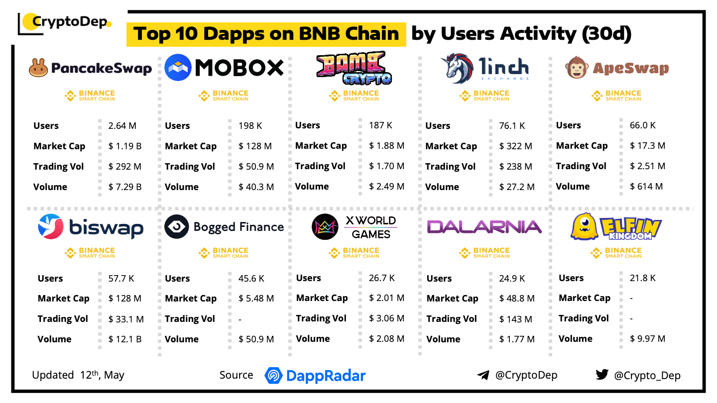 ββTOP 10 Dapps on BNB Chain by Users Activity (30d)