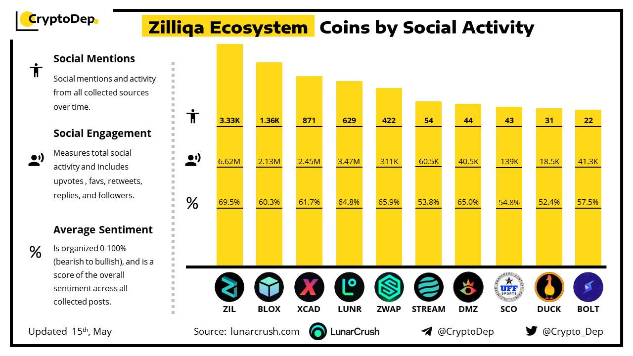 ββZilliqa Ecosystem Coins by Social Activity