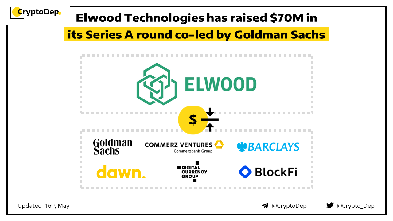 Elwood Technologies, a crypto firm owned by Alan Howard, has announced the closure of its $70M Series A round that was co-led by Goldman Sachs and Dawn Capital. In addition to lead investors the Series A round was joined by Barclays, BlockFi Ventures, Chimera Ventures, CommerzVentures, Digital Currency Group, Flow Traders and Galaxy Digital Ventures. The company will use the cash to expand its products and to grow internationally.