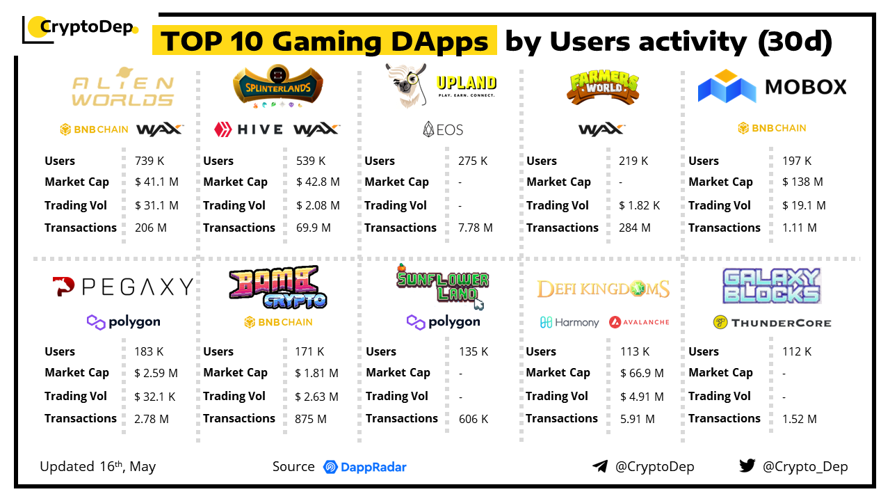 ββTop 10 Gaming Dapps by Users Activity (30d)