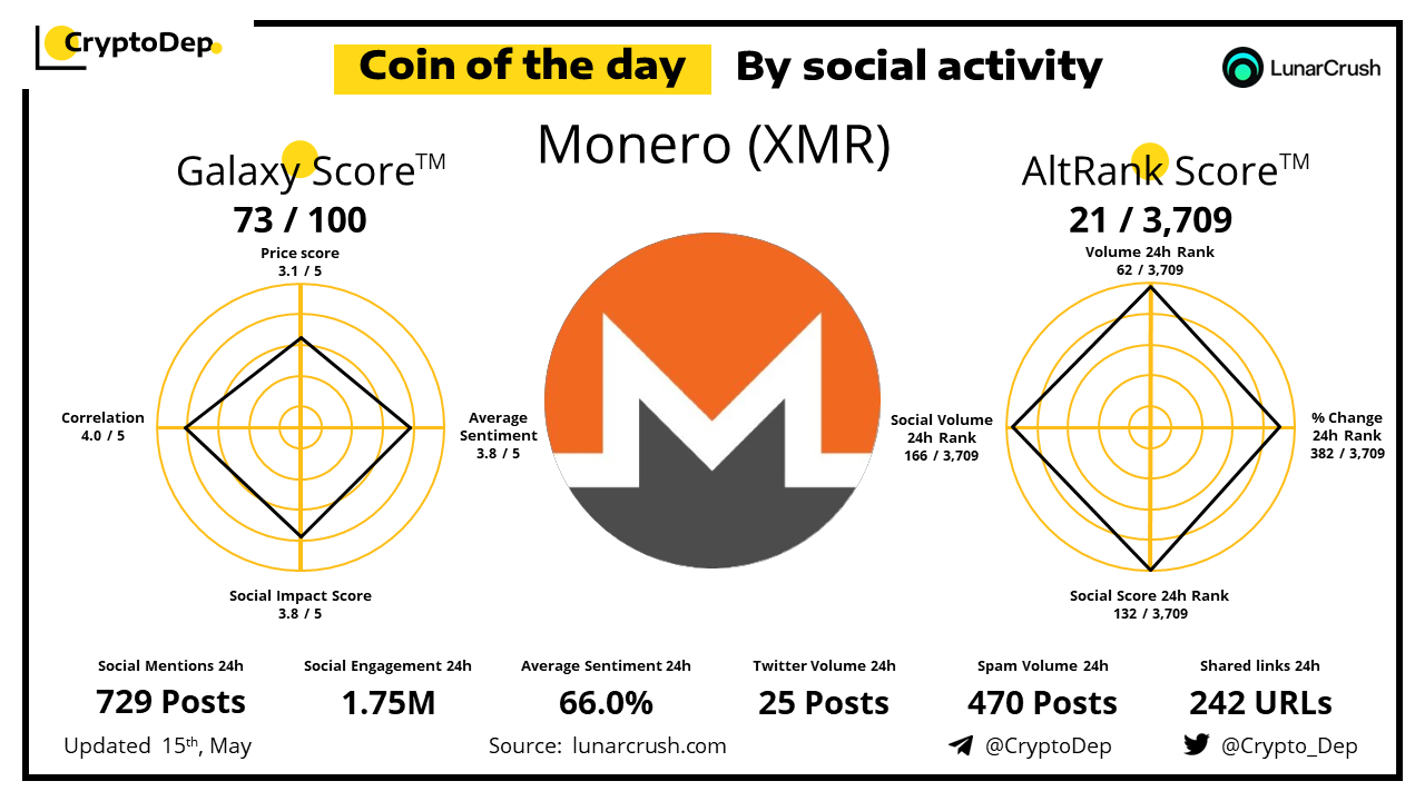 ββCoin of the day by social activity - Monero (XMR).