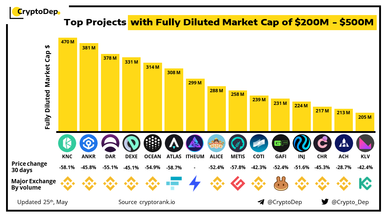โโTop Projects with Fully Diluted Market Cap of $200M - $500M
