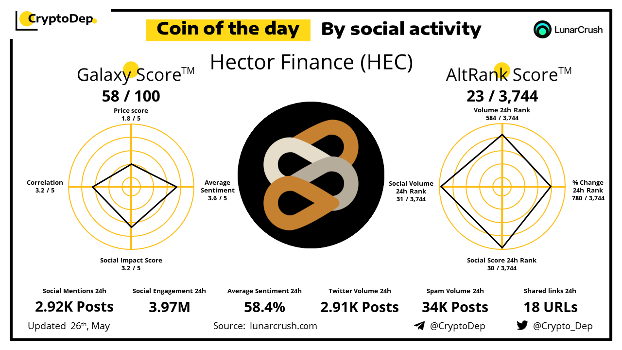 โโCoin of the day by social activity - Hector Finance (HEC).