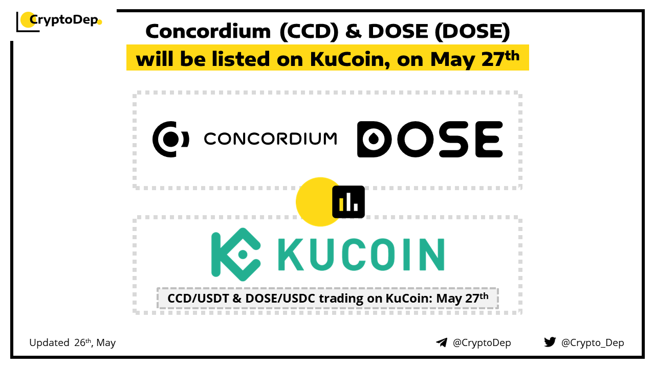 โโConcordium (CCD) & DOSE (DOSE) will be listed on KuCoin, on May 27th