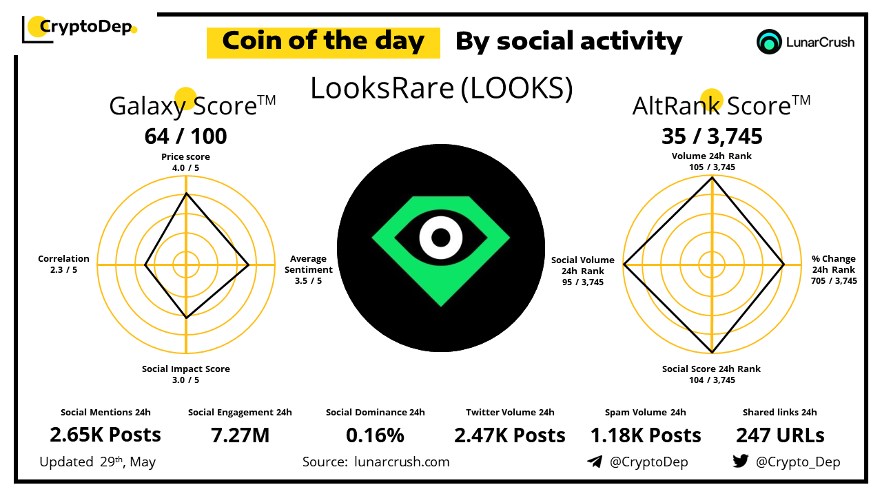 ββCoin of the day by social activity - LooksRare (LOOKS).