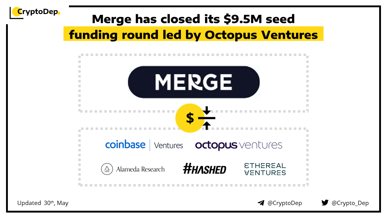 Merge, a London-based cryptocurrency payments firm has announced the closure of the $9.5 seed round led by Octopus Ventures. Other participants in the round included Coinbase Ventures, Alameda Research, Hashed, Ethereal Ventures, founders of Aave, Polygon, the CEO of Ledger, and the former CEO of Barclays Consumer Banking. The funds will be used to develop its API-based banking and payments platform, bridging the gap between fiat and crypto ecosystems.