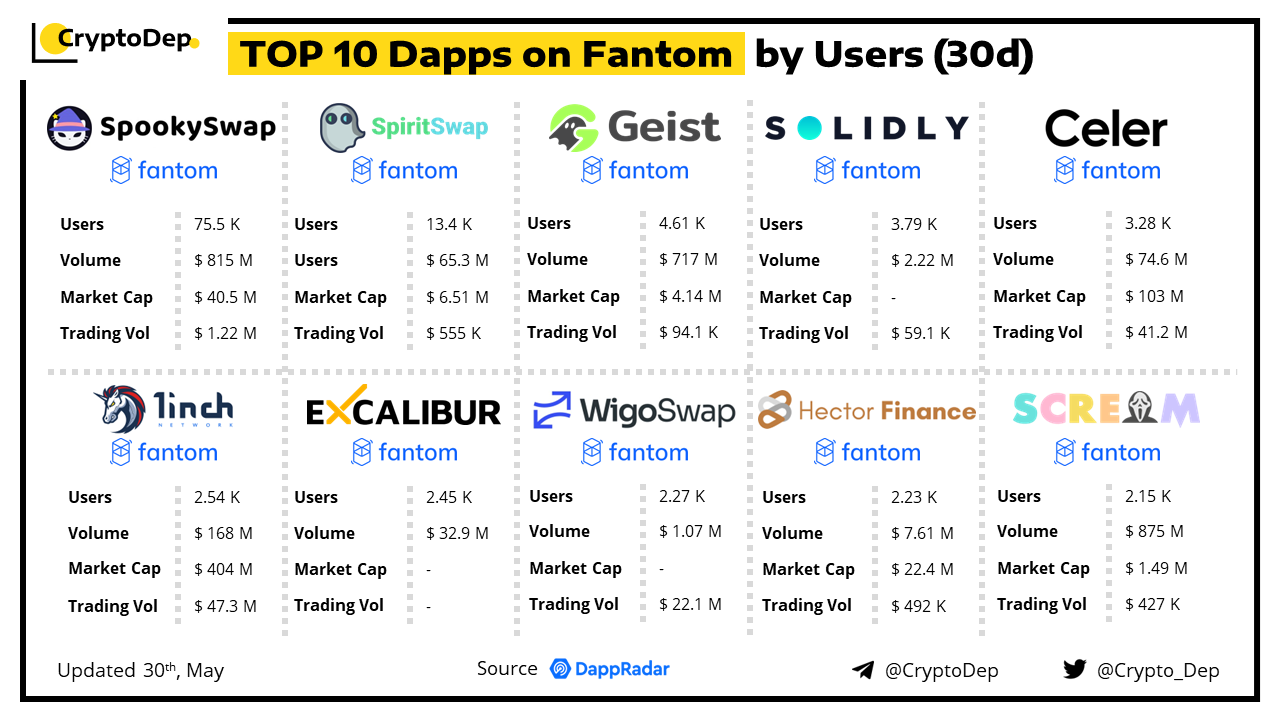 ββTop 10 Dapps on Fantom by Users (30D)