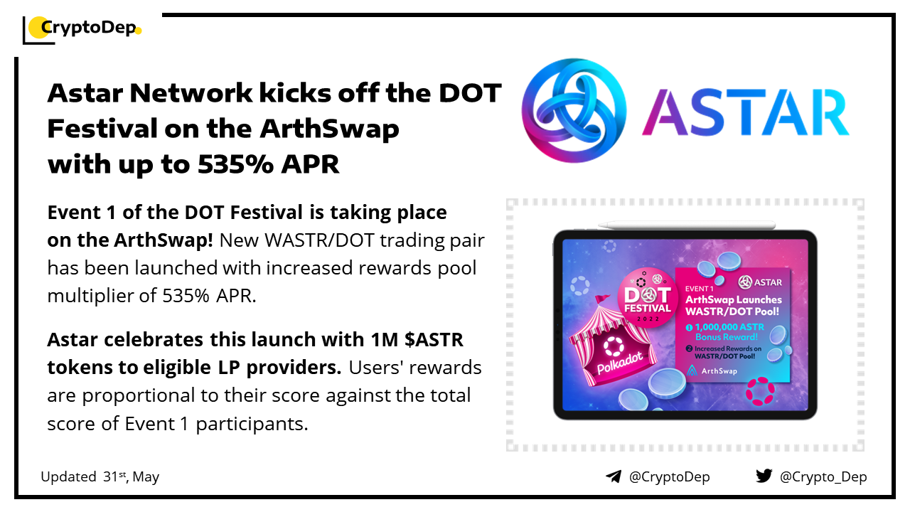 ββAstar Network (ASTR) kicks off the DOT Festival on the ArthSwap with up to 535% APR