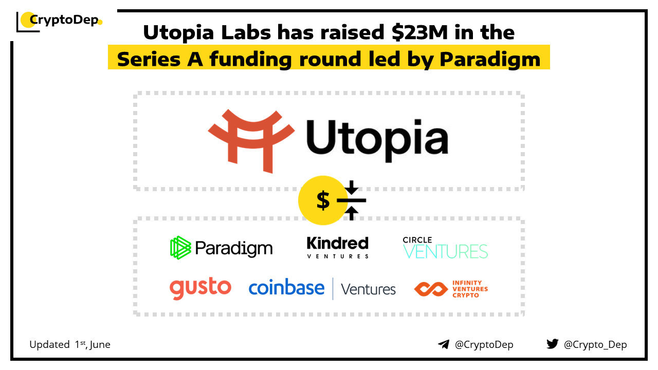 Utopia Labs has closed its $23M Series A funding round. The funding was led by Paradigm with participation from Kindred Ventures, Circle Ventures, Gusto, Coinbase Ventures, Infinity Ventures Crypto, Distributed Global, and Fourth Revolution Capital. This new funding will help Utopia Labs to pursue two main goals: develop and grow their team of the builders and creators who are innovating for DAOs in impactful ways & create new features, primitives, and initiatives that push the space forward and unlock the full potential of DAOs.