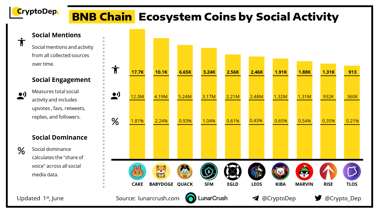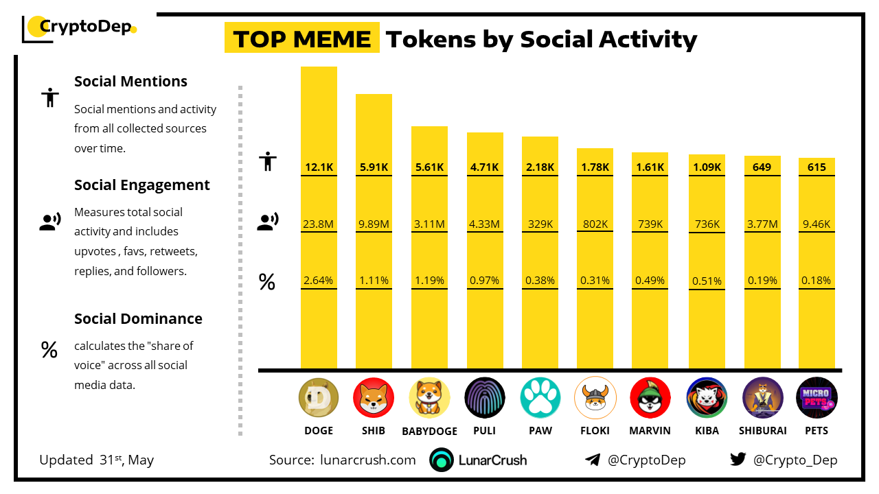 Social Engagement measures total social activity and includes upvotes, favs,retweets, replies, and followers.