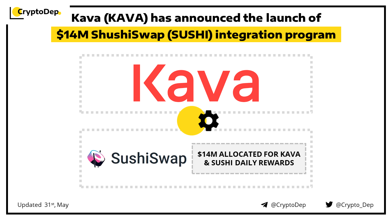 ββKava (KAVA) has announced the launch of $14M ShushiSwap (SUSHI) integration program