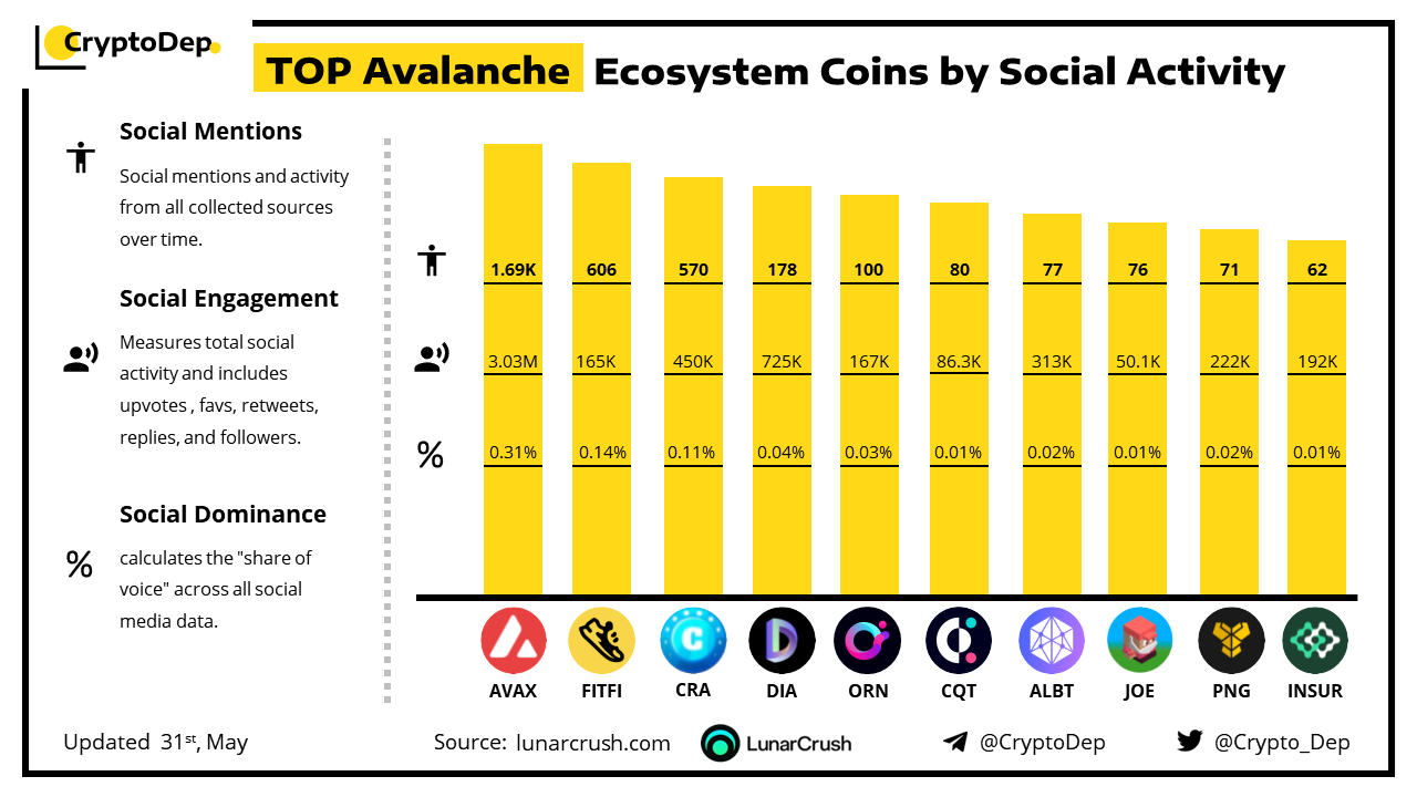 ββTOP Avalanche Ecosystem Coins by Social Activity