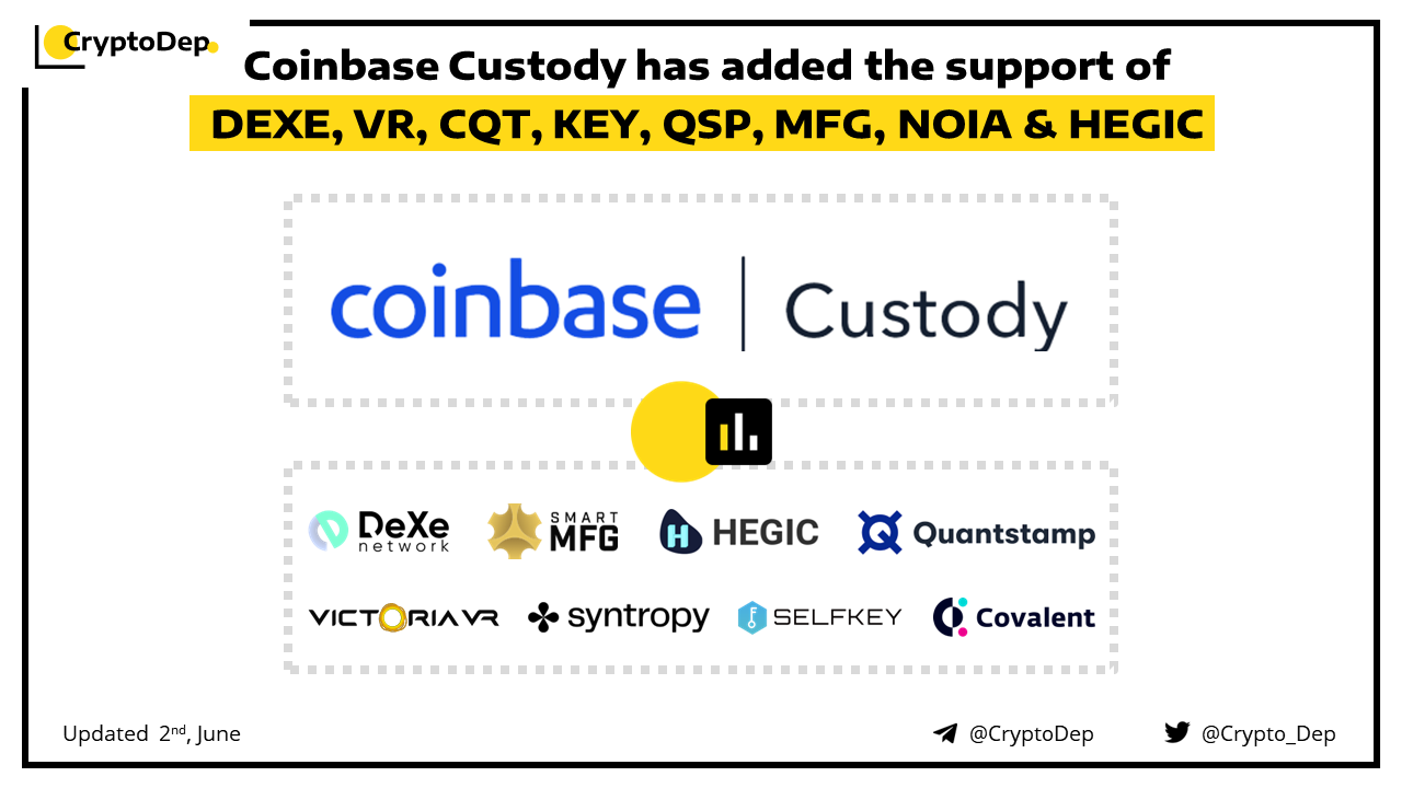 ββCoinbase Custody has added the support of DEXE, VR, CQT, KEY, QSP, MFG, NOIA & HEGIC
