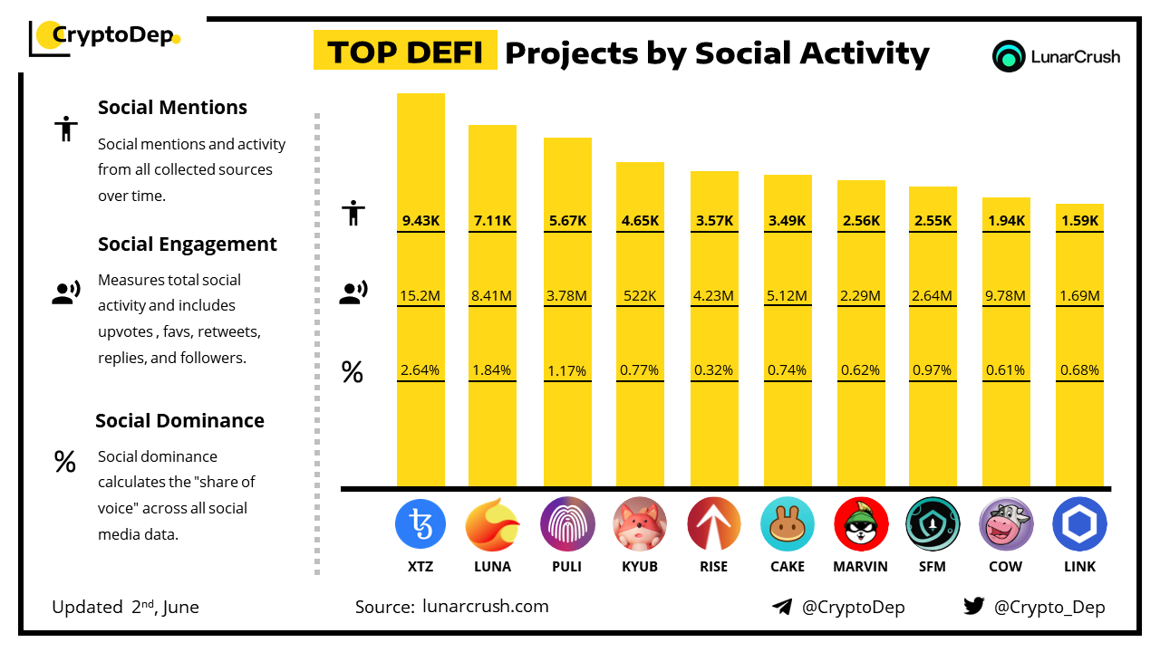Social Engagement measures total social activity and includes upvotes, favs,retweets, replies, and followers.