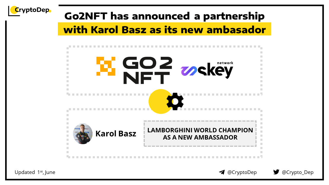 Karol Basz, a Polish racing driver and Lamborghini World Champion has become the first ambassador of the Go2NFT brand. As the Go2NFT's ambassador, Basz will represent the project and the technology within the world of professional motorsport and the automotive industry, serve as an extension to the marketing & business development team and assist in new project ideas and networking opportunities and present of the usefulness of technology in everyday applications.