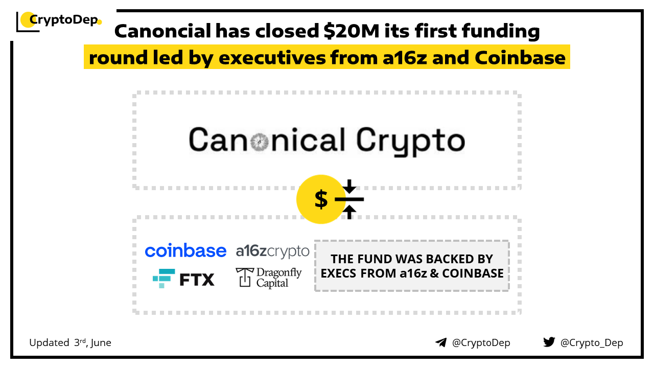 ββCanonical has closed $20M its first funding round led by executives from a16z and Coinbase