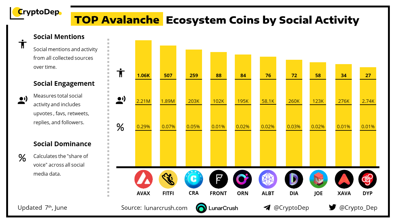 ββTOP Avalanche Ecosystem Coins by Social Activity