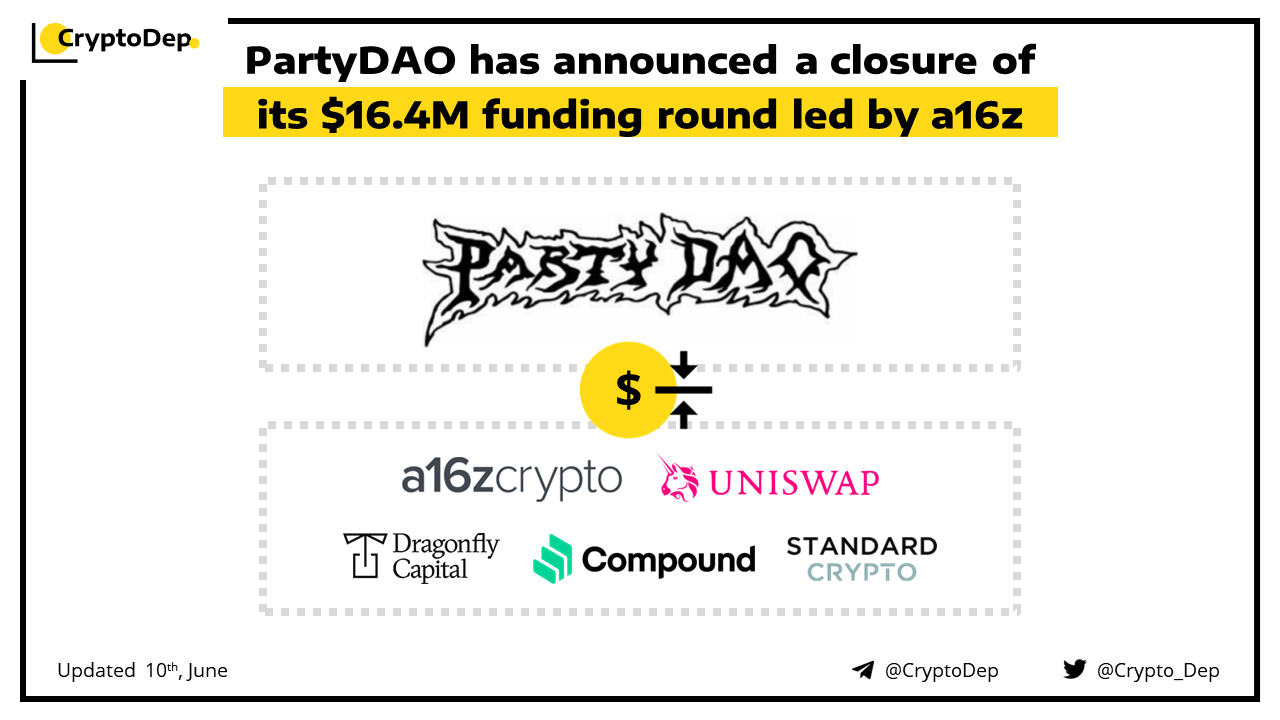 ββPartyDAO has announced a closure of its $16.4M funding round led by a16z