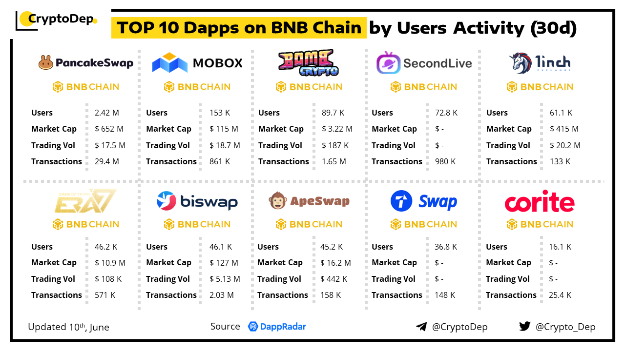 TOP 10 Dapps on BNB Chain by Users Activity (30d)