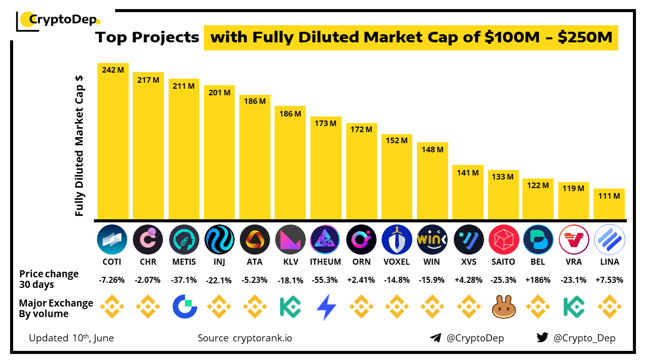 Top Projects with Fully Diluted Market Cap of $100M - $250M