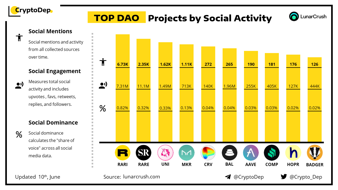 Social Engagement measures total social activity and includes upvotes, favs,retweets, replies, and followers.