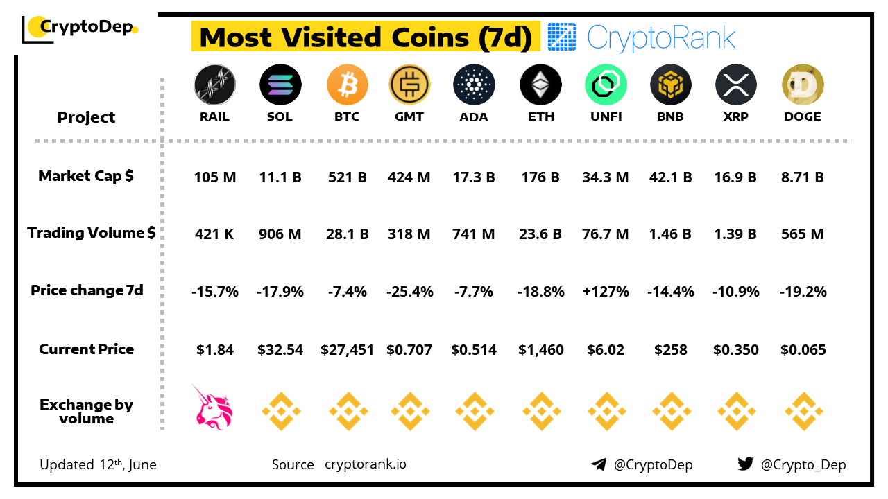 ββMost Visited Coins (7d) by CryptoRank.io