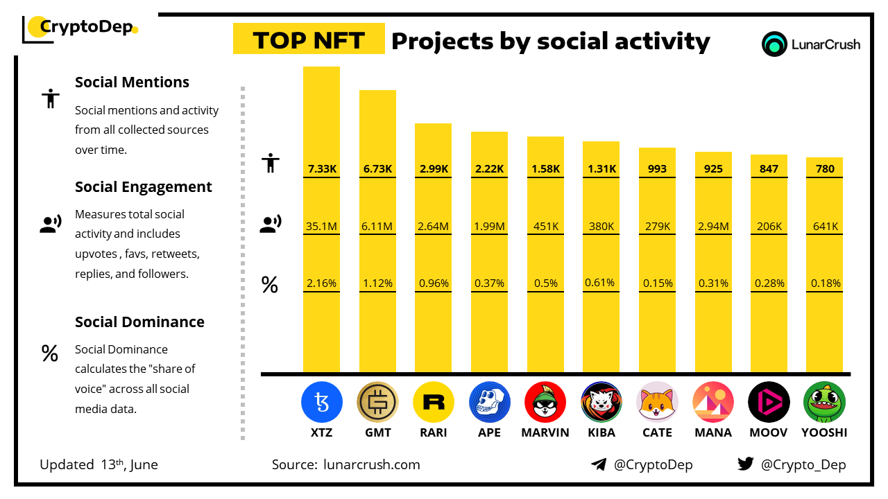 Social Engagement measures total social activity and includes upvotes, favs, retweets, replies, and followers.
