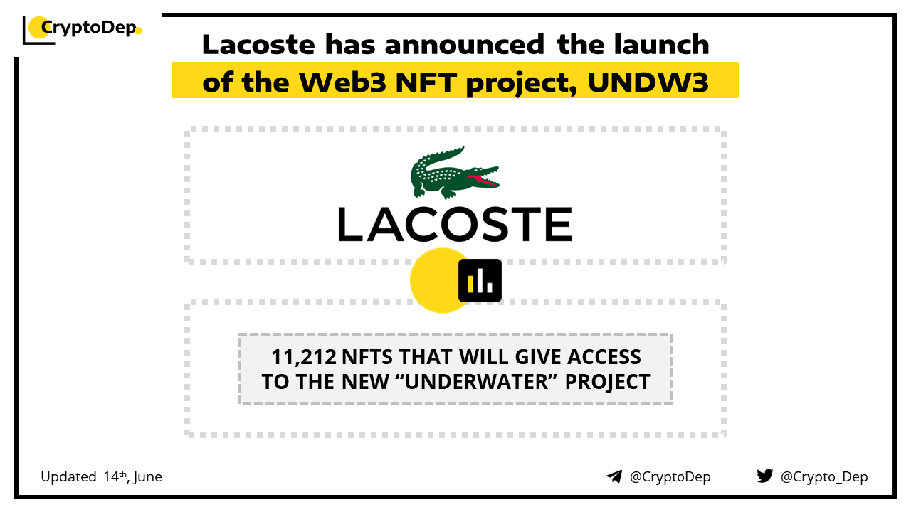Lacoste has launched a collection of 11,212 NFTs that will be sold for 0.08 ETH (roughly $97). Moreover, the project, called UNDW3 (pronounced "underwater"), will give collectors of the NFTs access to a long-term collaborative community. This launch aims to build an online community and engage with customers in a new way.