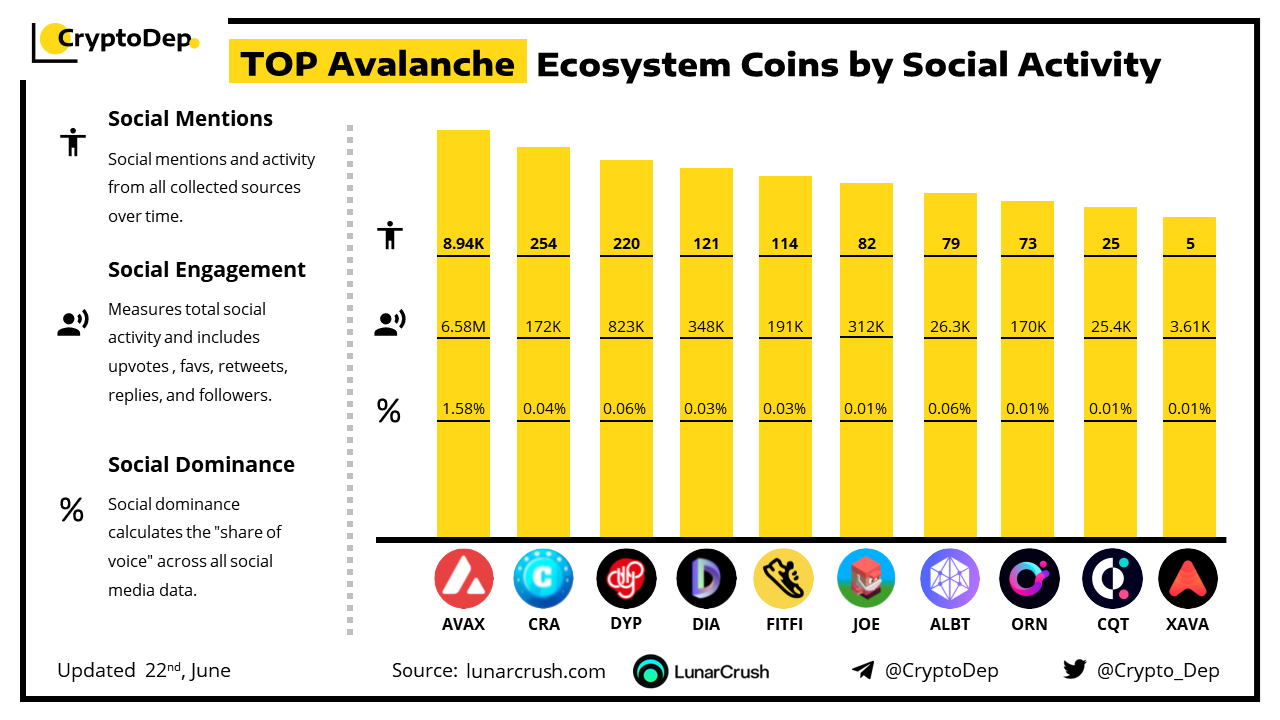 โโTOP Avalanche Ecosystem Coins by Social Activity