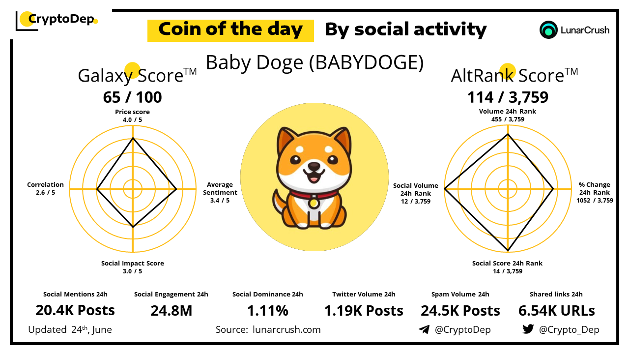 ββCoin of the day by social activity - Baby Doge (BABYDOGE).