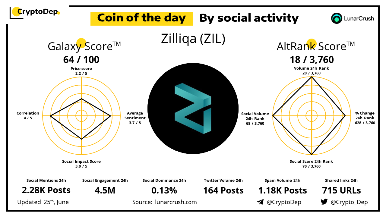 ββCoin of the day by social activity - Zilliqa (ZIL).