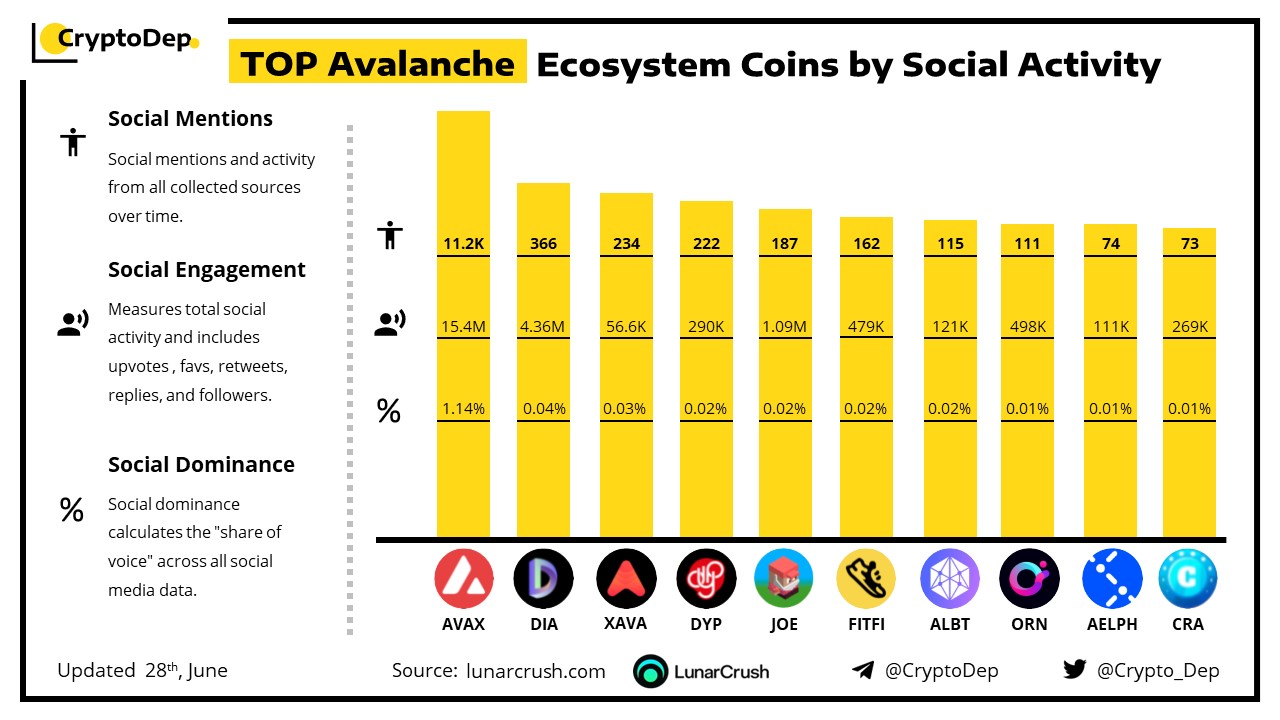 ββTOP Avalanche Ecosystem Coins by Social Activity