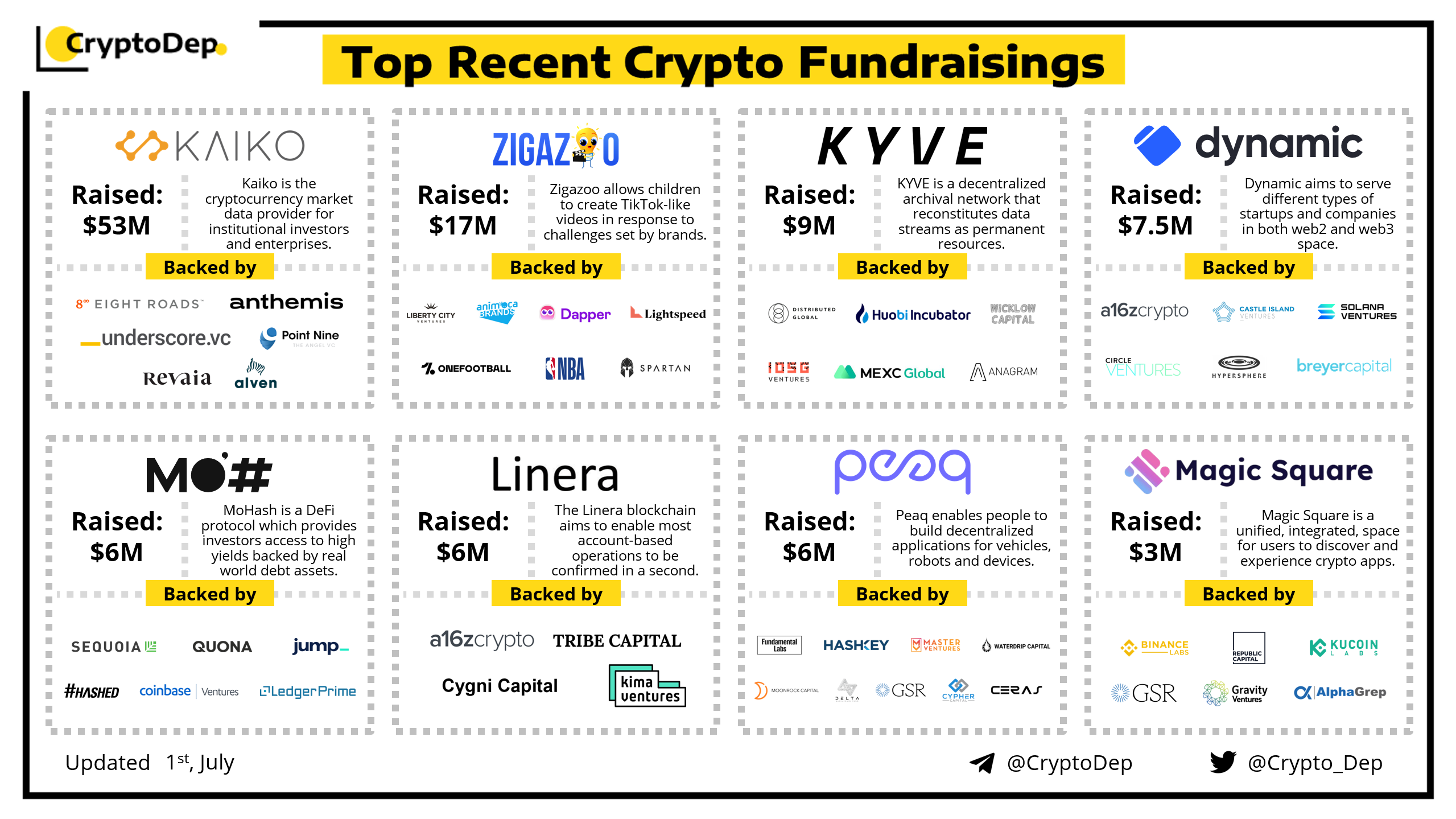 Despite that the market is in a brutal bear phase, many projects receive significant funding from major funds such as Coinbase Ventures, a16z, Sequoia, Binance Labs, Kucoin Labs, and others. Here are several examples of recent funding rounds.